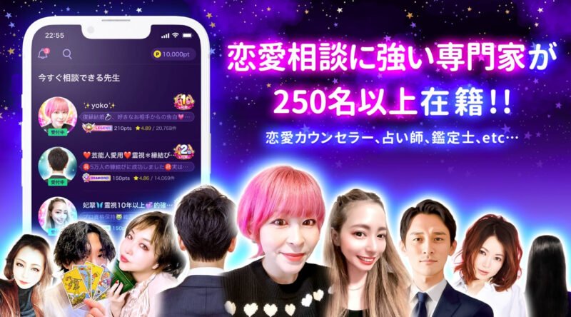 ケアプリには、恋愛カウンセリングや占いの分野でキャリアを積んだプロフェッショナルが多数在籍しています。