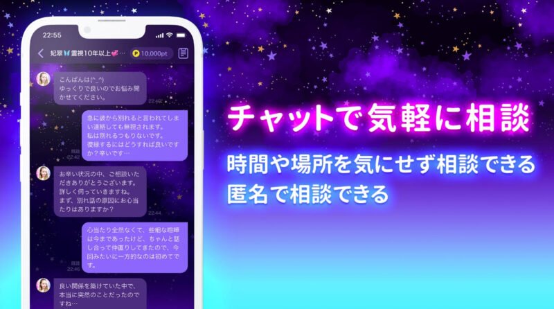 復縁や恋愛の悩みに特化した信頼性の高いチャット占いアプリとして、多くの方に支持されているサービスです。