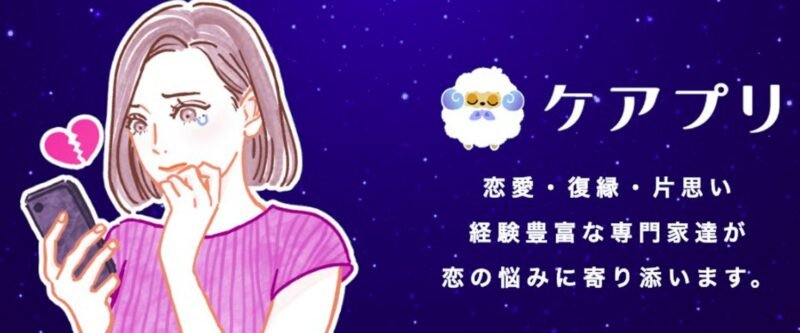 この記事では、復縁や恋愛の悩みをチャットで気軽に打ち明けられる占いアプリ「ケアプリ」について、詳しくご紹介していきます。