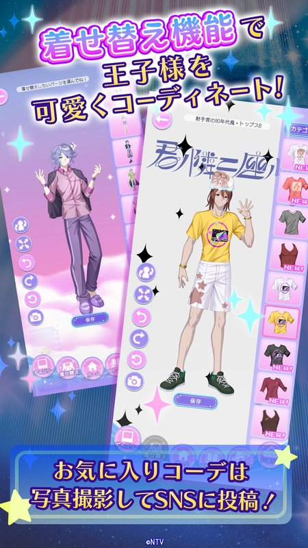 キミノスでは、王子様たちにさまざまな衣装を着せ替えることが可能です。