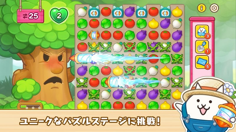 『パズルで豊作!にゃんこ村』は、にゃんこ大戦争のPONOSが手がけた、マッチ3パズルと農園リノベーションが融合した新作ゲームです。